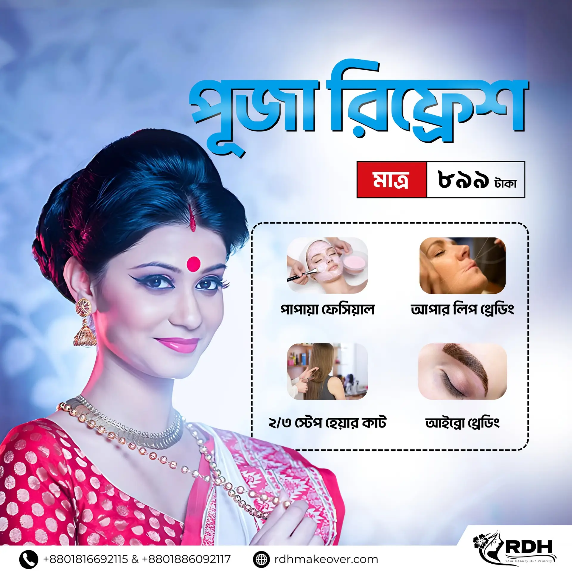 Bridal Makeover Party Makeover Combo Package Hair Colour Hair Rebounding Hair Care Skin Care Add Ons Bridal Makeover Party Makeover Combo Package Hair Colour Hair Rebounding Hair Care Skin Care Add Ons Puja Refresh Booking Request Puja Royal Glow Booking Request Puja Glam Booking Request Puja Premium Care Booking Request Bridal Makeover Booking Request Bridal Makeover Gold Booking Request Bridal Makeover 2Day Booking Request Full Bridal Makeover Booking Request Hair Colour Booking Request Hair Combo Package 1 Booking Request Hair Combo Package 2 Booking Request Hydra Combo Booking Request Relaxing Combo Booking Request Deep Cleansing Combo Booking Request Choose Any Booking Request Beauty Buffet SEE MORE DETAILS